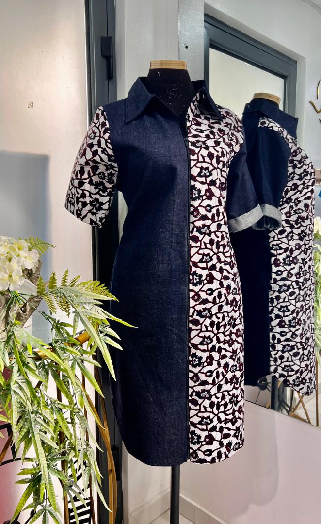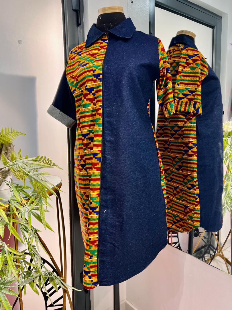 GAK Jeans Dress Combination of Ankara & Jeans